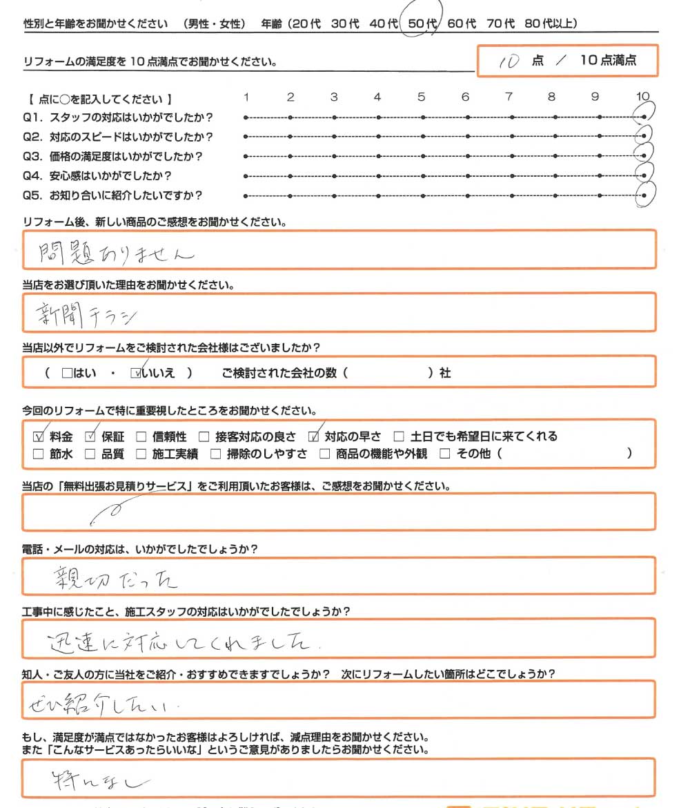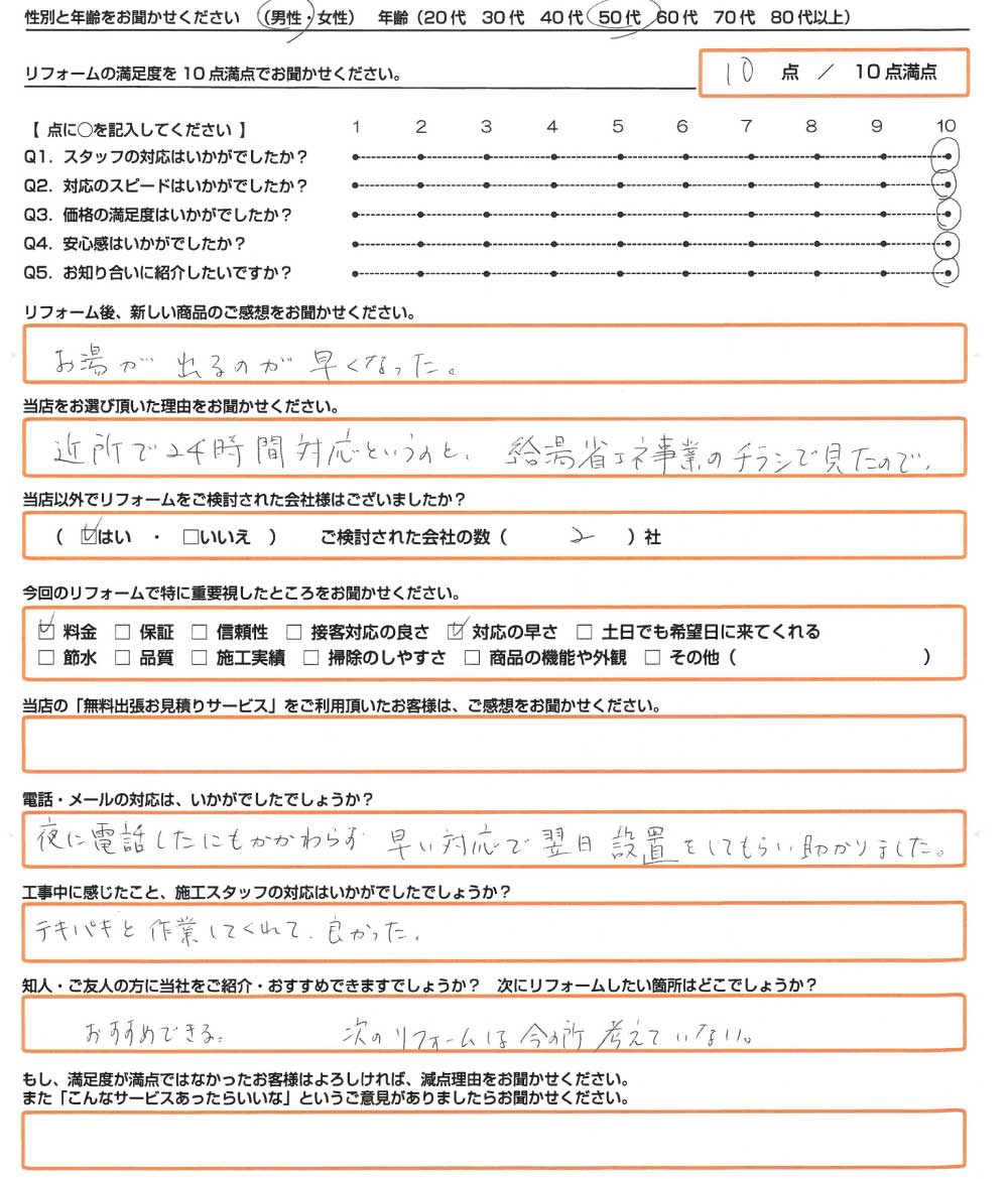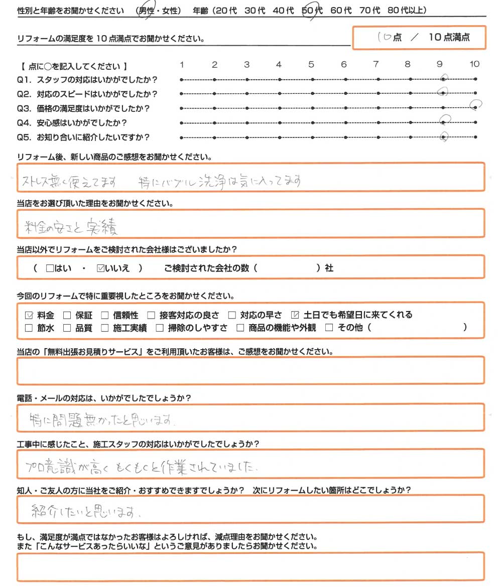直筆のアンケート リフォーム情報 施工日:2023年10月12日 場所:加西市 リフォーム内容:エコキュート取替 使用したモデル:SRT-S436UZ お客様情報性別・年齢:男性(50代) リフォームの満足度10点/10 ...
