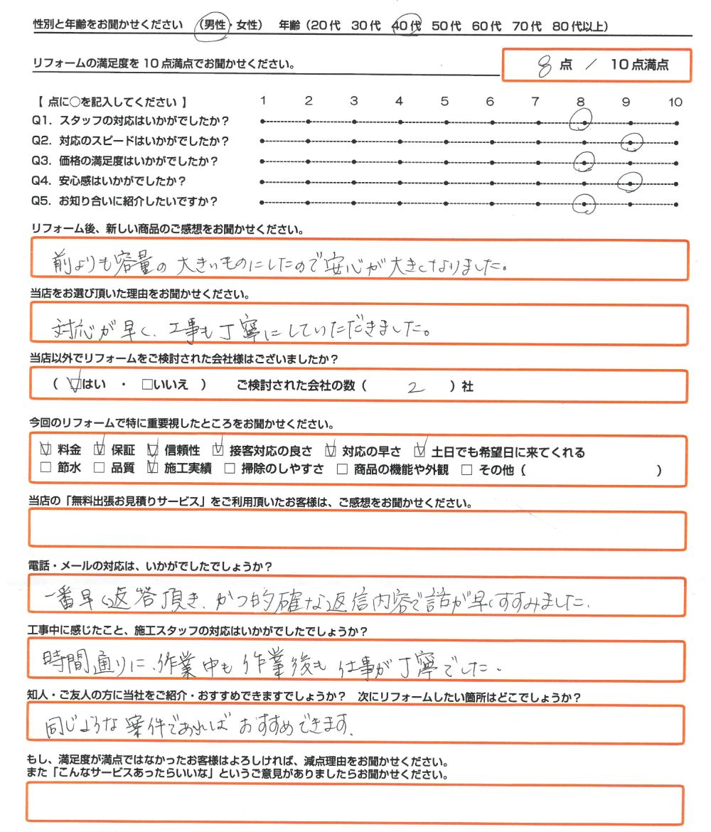 リフォーム後、新しい商品のご感想をお聞かせください。
