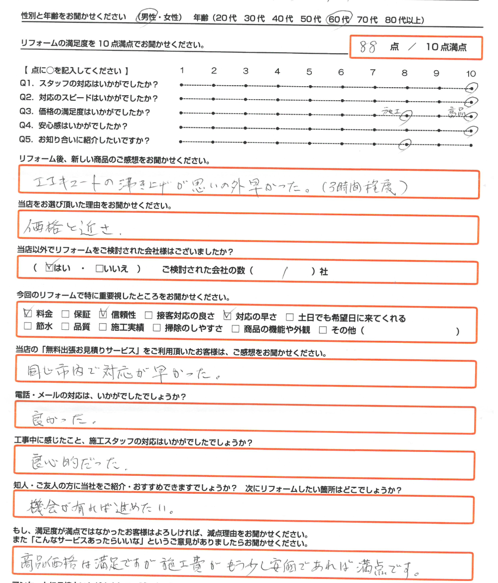 リフォーム後、新しい商品のご感想をお聞かせください。