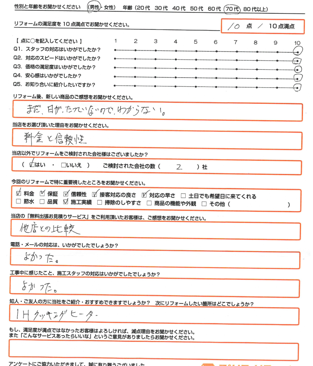 リフォーム後、新しい商品のご感想をお聞かせください。